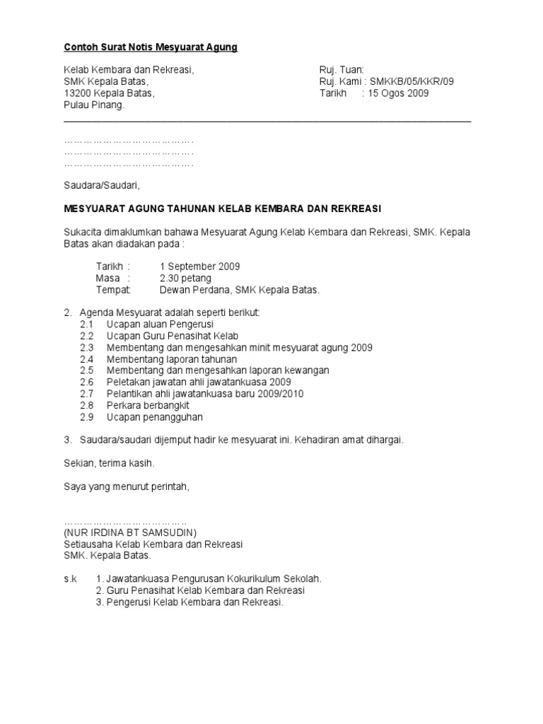 Contoh Surat Notis Minit Mesyuarat Agung Pdf